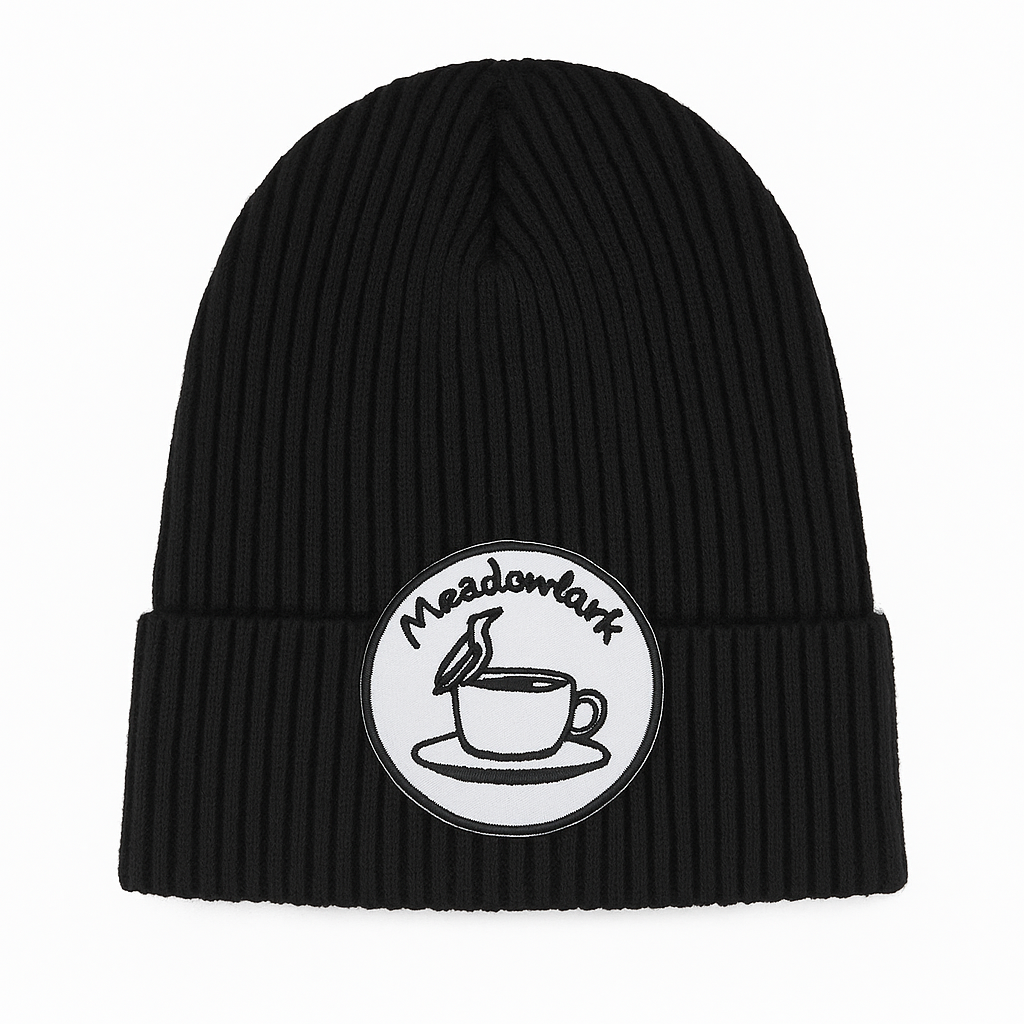 Stay warm and stylish all winter long with the Meadowlark Winter Hat. Crafted from soft, ribbed knit material, this beanie offers both comfort and durability for cold weather days. The classic fold-over cuff features the signature Meadowlark patch—a minimalist design showcasing the Meadowlark bird perched on a steaming cup—a nod to cozy mornings and community coffee shop vibes.